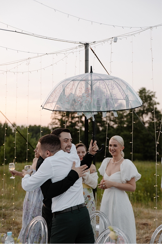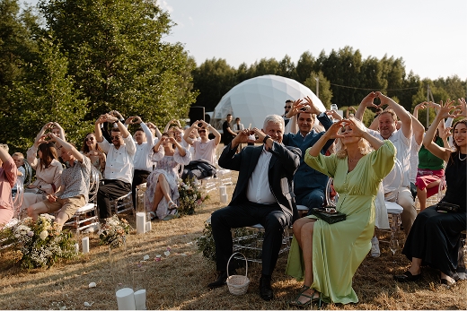 Для воплощения мечты пары во Владимирской области не подходила ни одна площадка. А руководство парка отдыха Атмосфера прислушалось к нашим пожеланиям и подготовило поле с выходом ко всем удобством , а также возвело план Б на случай плохой погоды.