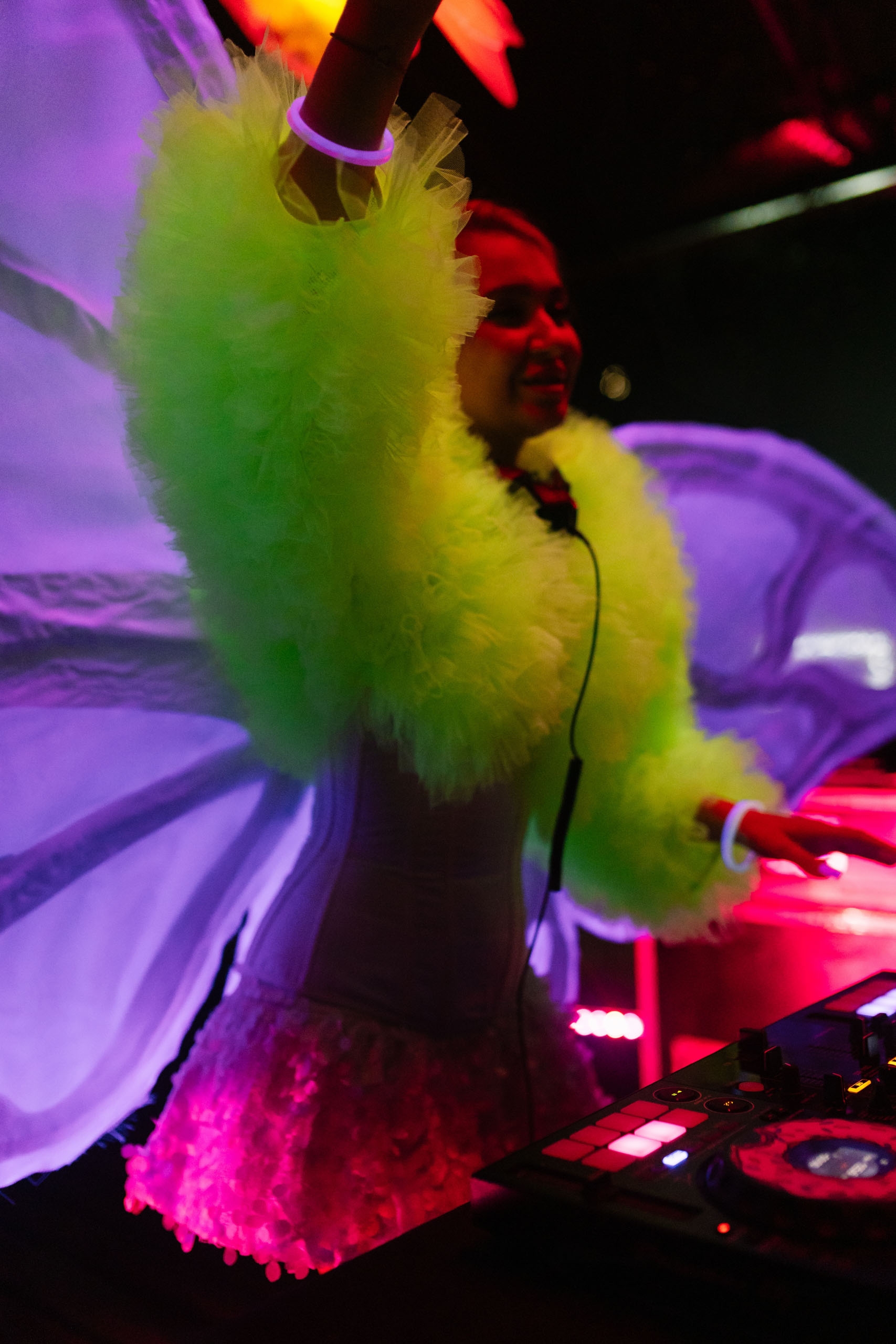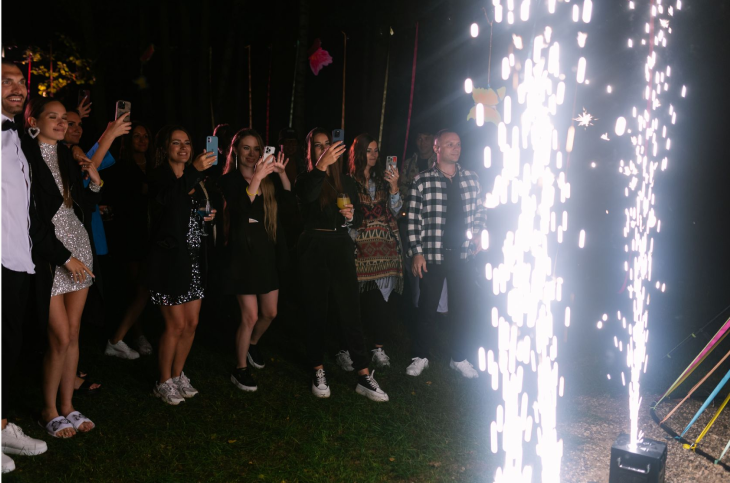 2.Воплотить в жизнь атмосферу фестиваля, на котором познакомились Саша и Юля. Неоновое освещение, люминесцентно-флуоресцентная краска, электро музыка, площадка под открытым небом, выездной бар, образы пары, танцы до утра. На таком яркое after – party воссоздалась необходимая атмосфера.