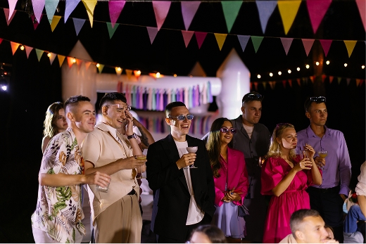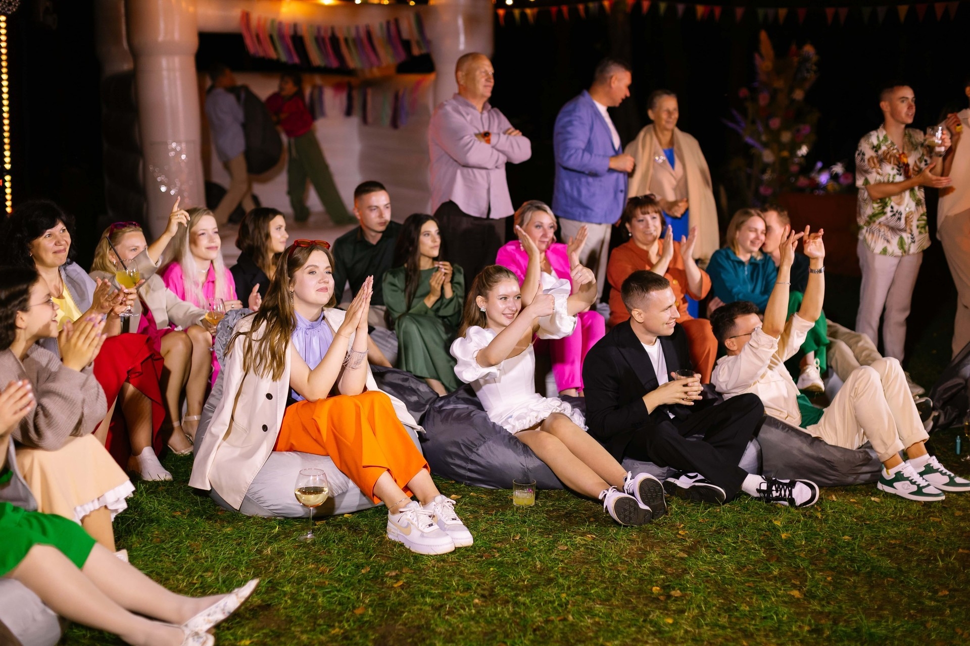 Большое количество разнообразных интерактивных зон и фотозон. Сюрпризом от невесты – песня под аккомпанемент музыкантов. На финал - песни под гитару у костра, и, конечно, безумно драйвовая программа от ведущего на весь вечер. Все это и не только – про свадьбу Никиты и Елизаветы.